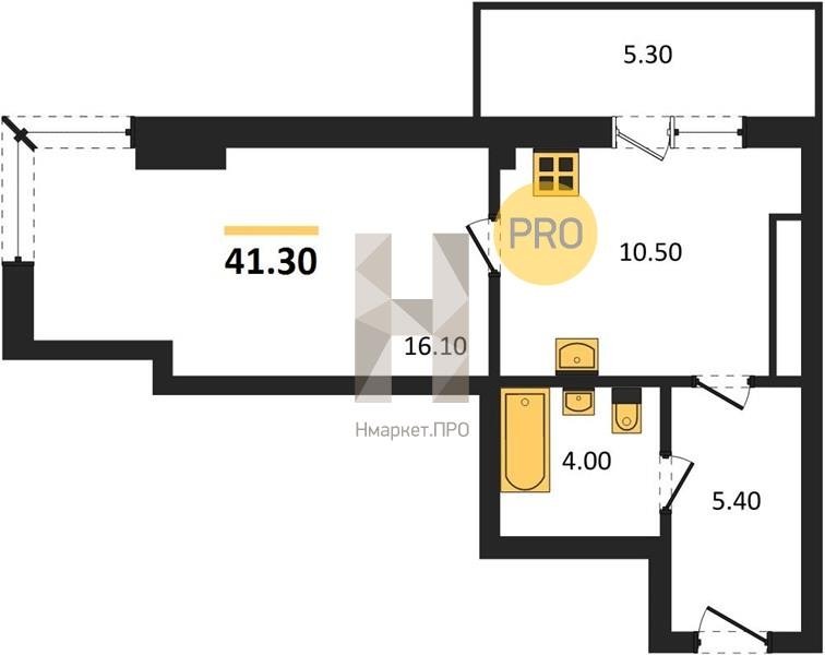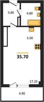 Площадь от 34.9 м2