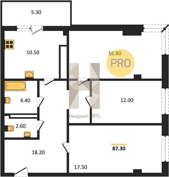 Площадь от 87.7 м2