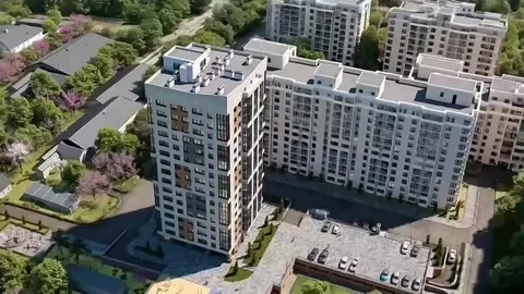 Интересное архитектурное решение, колоны на которых установлены коммерческие помещения, для вашего досуга и отдыха.