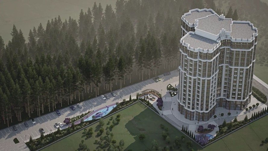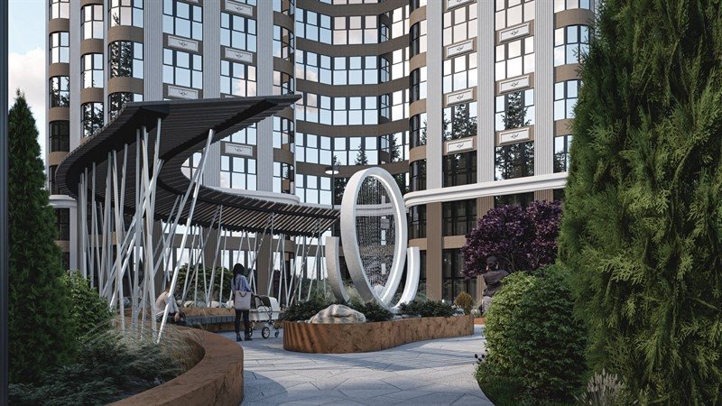 Высотное здание с эффектными панорамными окнами открывает широкие виды на зелёный город и динамичный центр, наполняя квартиры светом и простором.